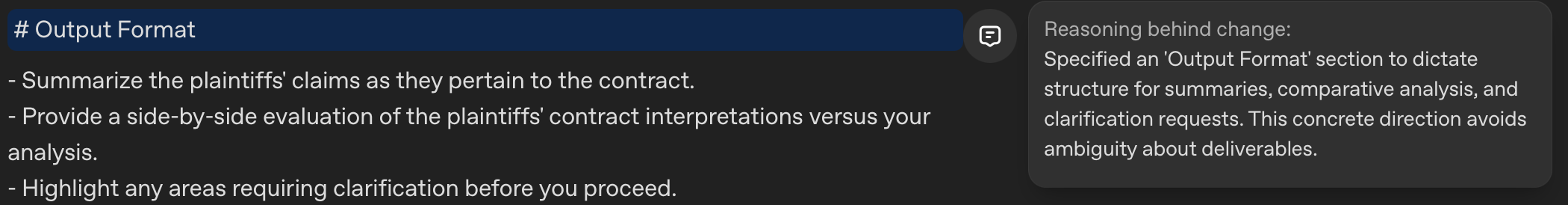 Request Reasoning Visibility: Add instructions like "explain your reasoning" before optimization. The tool often transforms this into structured analytical frameworks that mirror legal reasoning patterns.